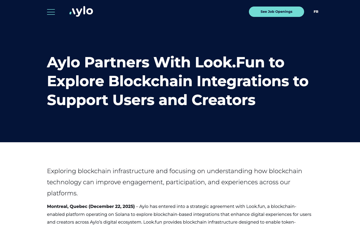 Aylo and Look.Fun have entered into a strategic agreement to explore blockchain and Web3 integrations that will benefit Aylo Brands and their creators.